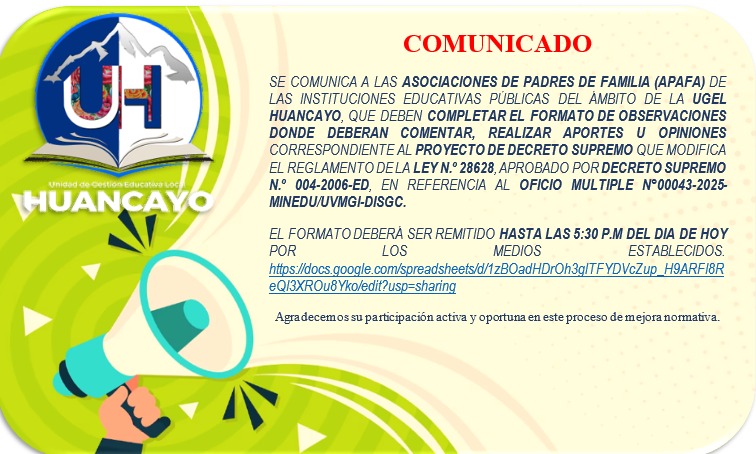 Si eres docente, auxiliar o personal administrativo (nombrado o contratado) de la Unidad de Gestión Educativa Local (UGEL) Huancayo, puedes acceder al Sistema Ayni del