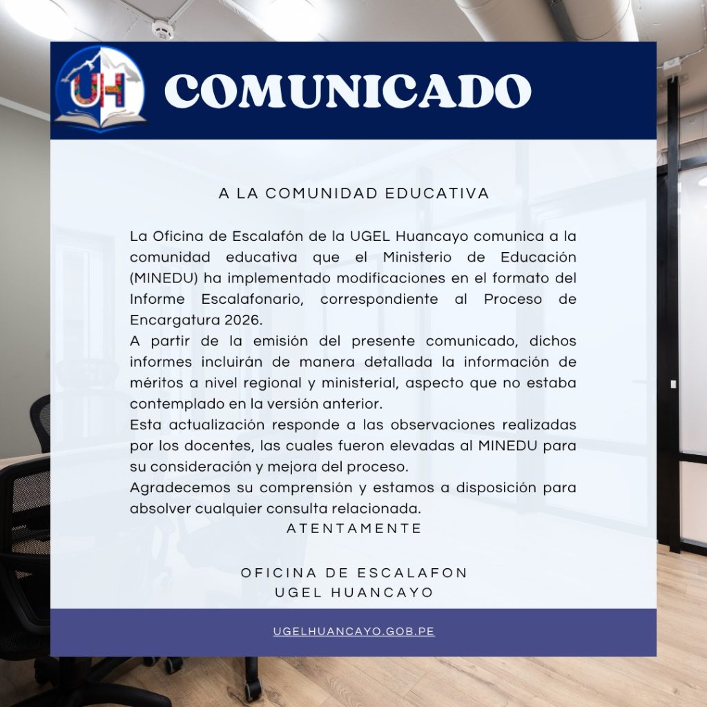 Atención a los directores de las II.EE. Públicas y Privadas del ámbito de la UGEL Huancayo, a través del Oficio Múltiple N° 266-2024, se les brinda información relacionada a Certificados de Estudios.